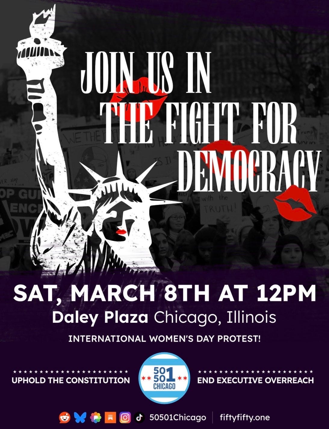 Instagram: @50501Chicago https://www.instagram.com/50501chicago?igsh=NnQxZzdsandjMXpt